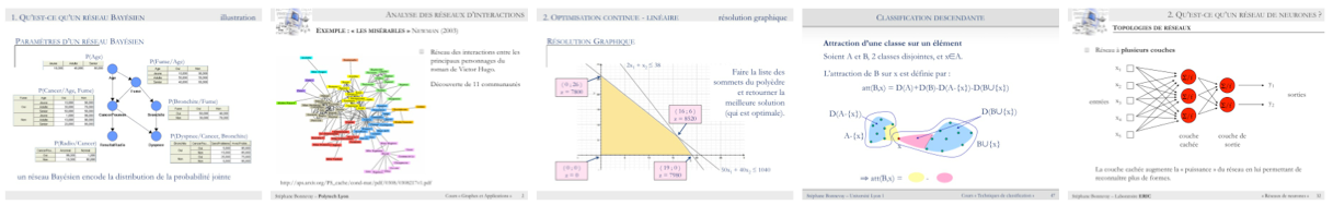 Mes supports de cours, TD et projets sont accessibles aux étudiants sur la plateforme de l'université Lyon 1 : CLAROLINE.